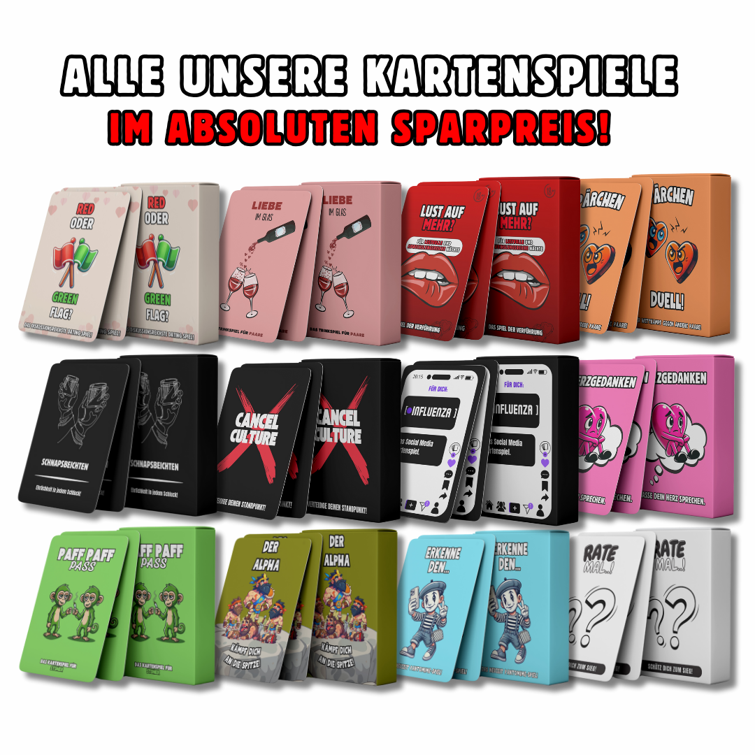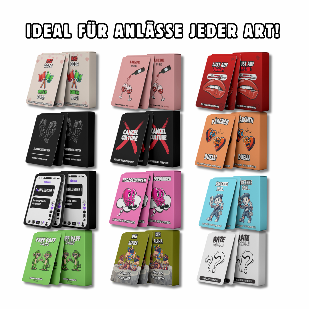 Erlebe grenzenlosen Spielspaß mit all unseren Kartenspielen in einem Bundle! Ob Partys, Familienabende oder spannende Diskussionen – dieses Paket bietet alles, um jeden Anlass unvergesslich zu machen.