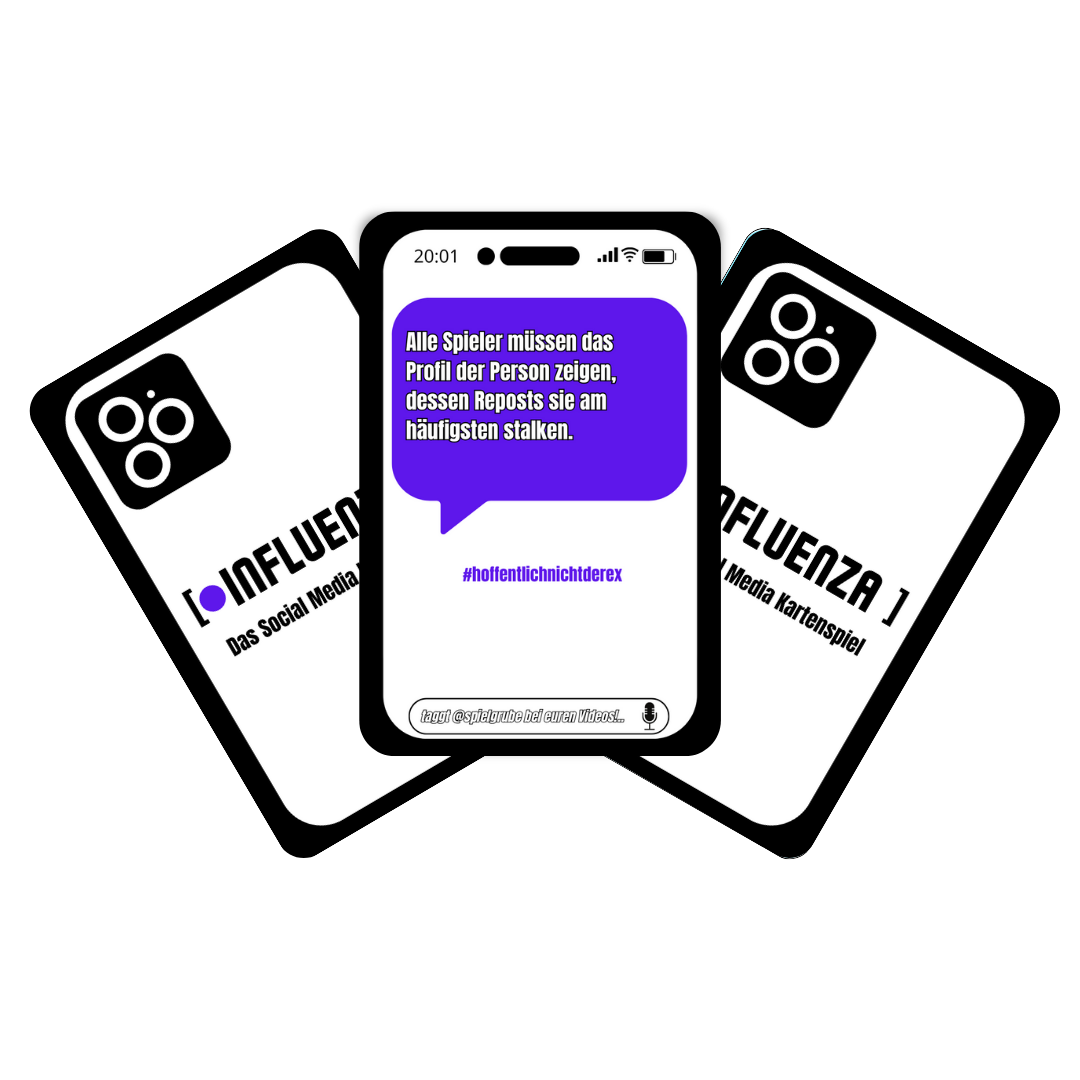 Mit INFLUENZA wird jeder Spieleabend zum Highlight! Ob du dein Instagram-Archiv zeigen oder die letzte TikTok-Challenge nachmachen musst – dieses Spiel bringt Spaß und sorgt für unvergessliche Momente!